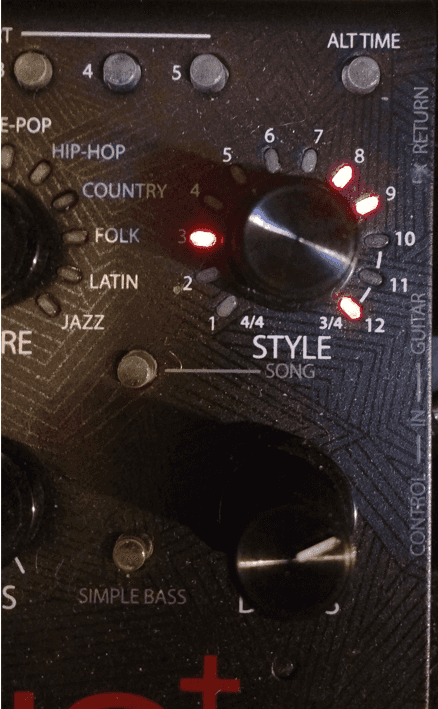 When the 3, 8, 9, 12 song lights on the DigiTech Trio+ are lit, it means you are not giving it the 800ma power that it requires.